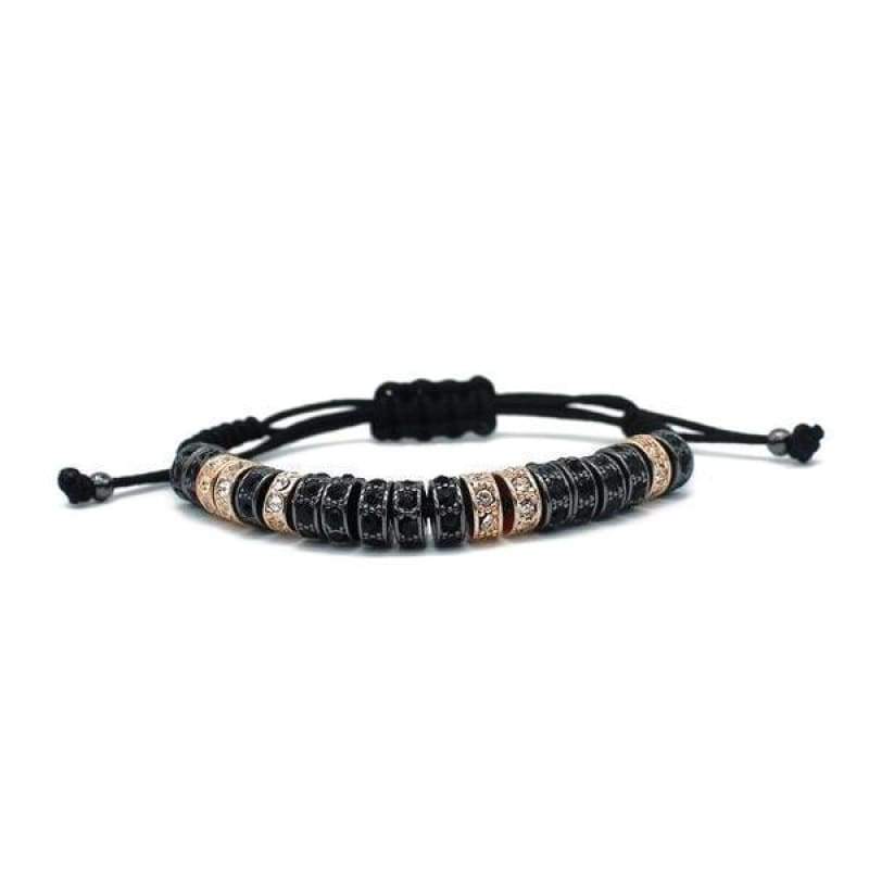 This bracelet is definitely a showstopper. The beautiful design is visual eye candy. Suits best with formal and smart casual wear when combined with a watch. The length of the bracelet is adjustble to fit any hand type and the gold details are what makes this piece special. There are a total of 20 stones that bring the unique look and feel to the black and gold bracelet.