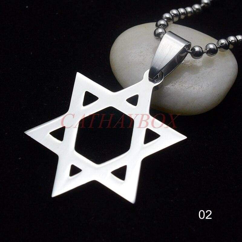Free Shipping Trendy Silver tone Stainless Steel Six-Pointed Jewish Star of David Hexagram Charm Pendant Necklace Jewelry - Pendant Necklace