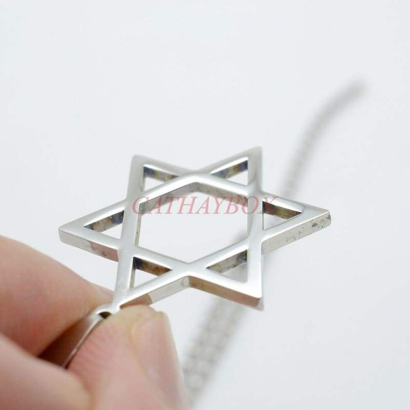 • Load image into Gallery viewer, Free Shipping Trendy Silver tone Stainless Steel Six-Pointed Jewish Star of David Hexagram Charm Pendant Necklace Jewelry - Pendant Necklace