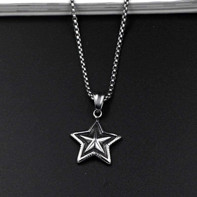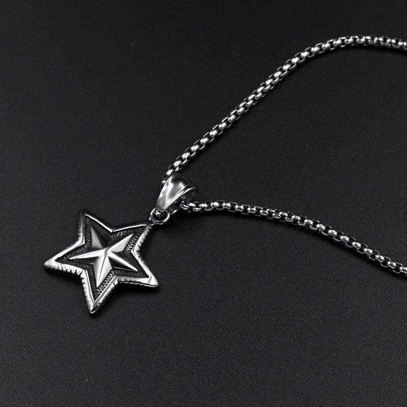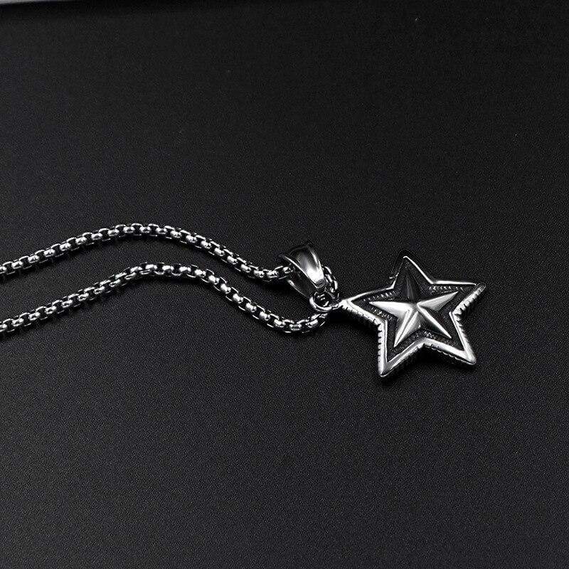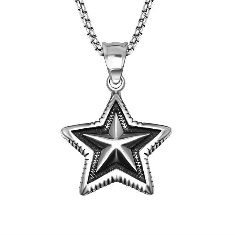 • Load image into Gallery viewer, Gothic Black High Polished Silver Tone Enamel 316L Pentacle Stainless Steel Pendant Necklace with SS Chain 60 CM - Pendant Necklace