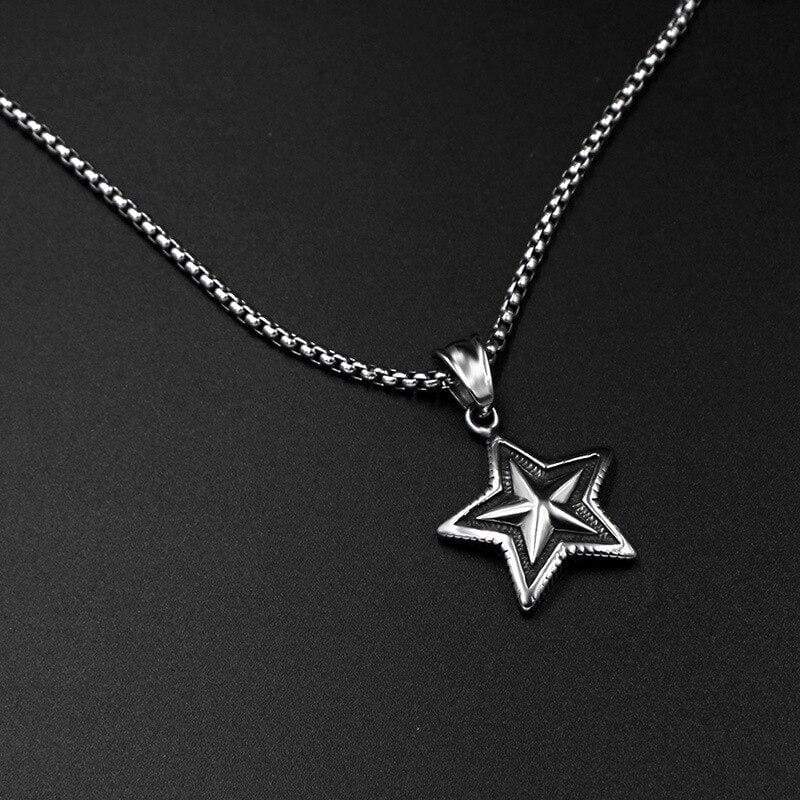 Gothic Black High Polished Silver Tone Enamel 316L Pentacle Stainless Steel Pendant Necklace with SS Chain 60 CM - Pendant Necklace