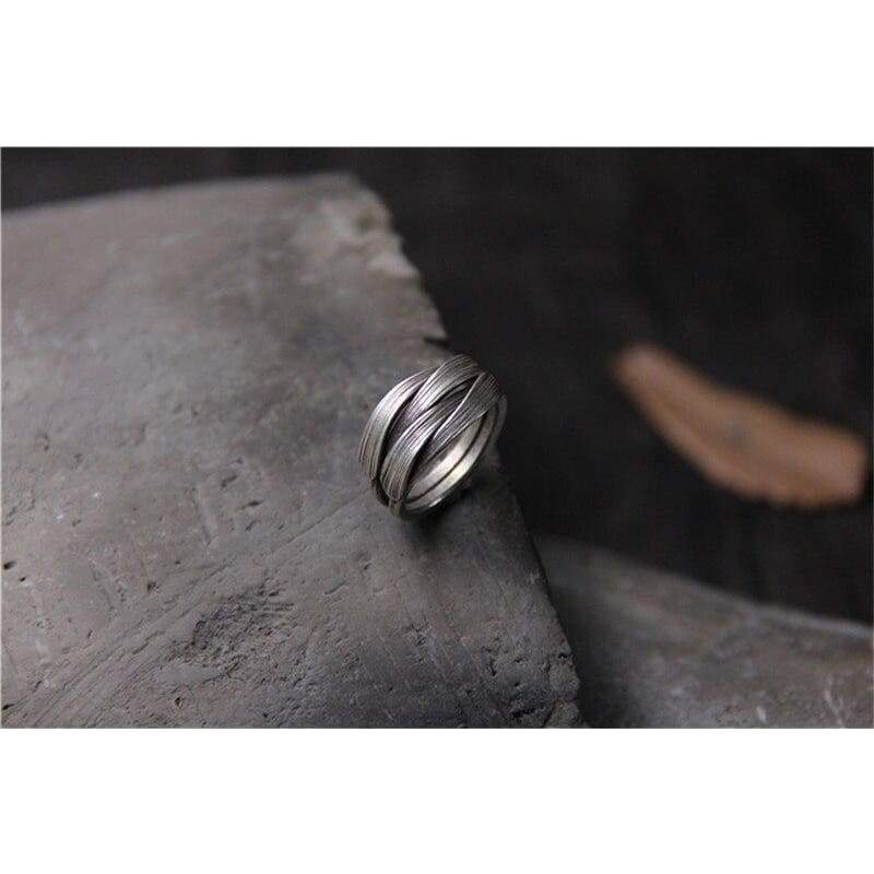 • Load image into Gallery viewer, Handmade Thai Silver Woven Band Rings Women 100% Pure Sterling Silver 925 Black Antique Thai Silver Female Jewelry Free Box Gift