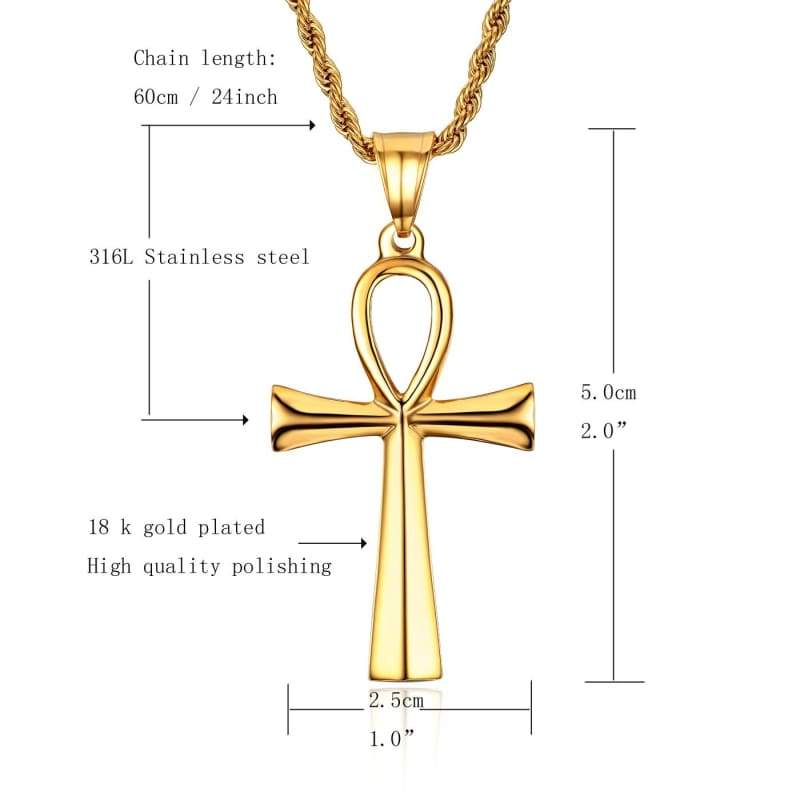 HZMAN Mens Gold Stainless Steel Coptic Ankh Cross Religious Pendant Necklace 22 Rope Chain (Gold) - Pendant Necklace