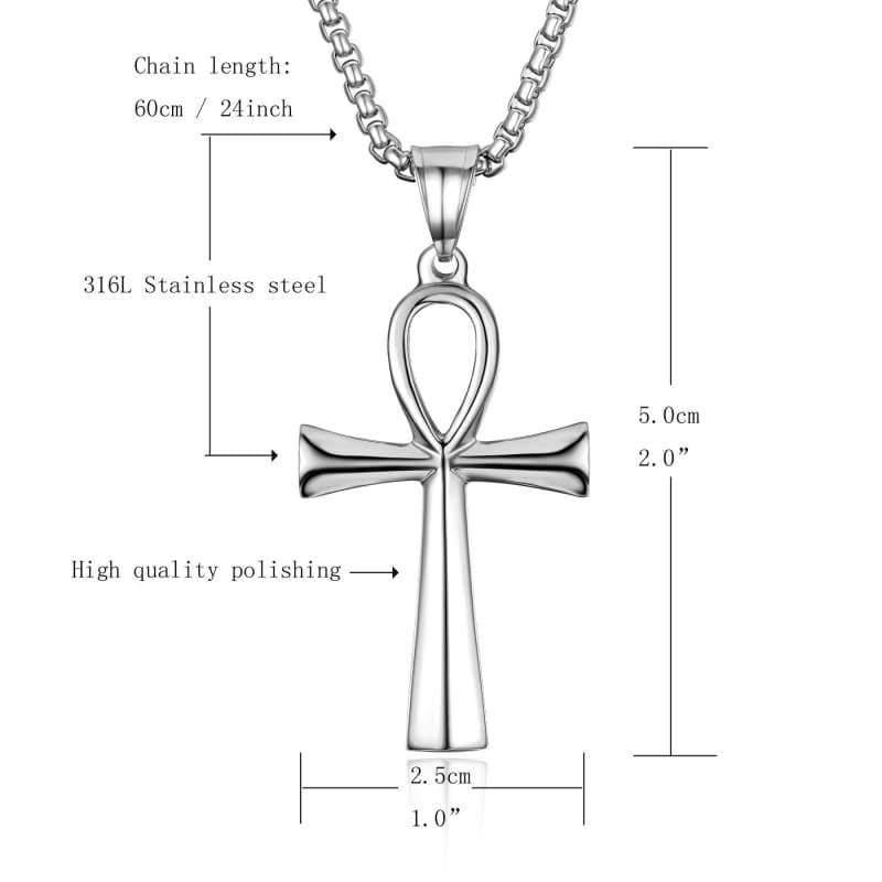 HZMAN Mens Gold Stainless Steel Coptic Ankh Cross Religious Pendant Necklace 24 Rope Chain (Silver) - Pendant Necklace