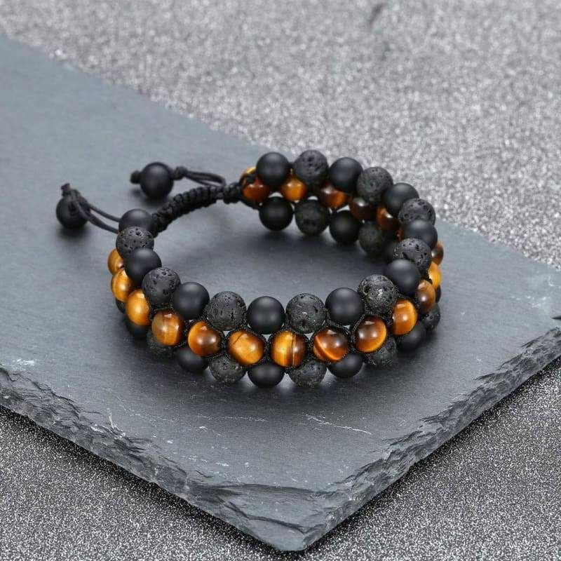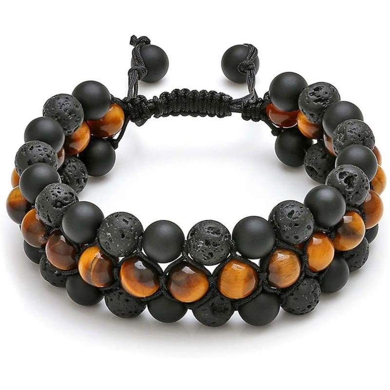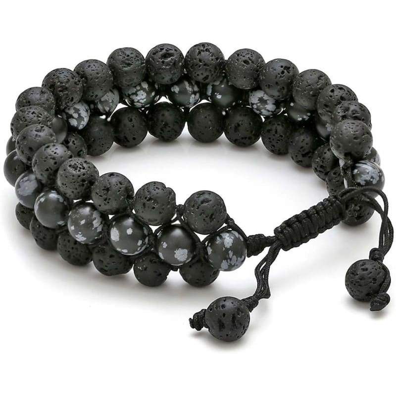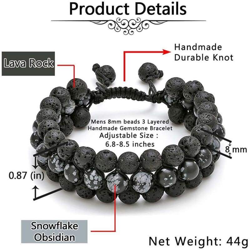 ● PERFECT SIZE: Handmade braided three layer lava rock obsidian bracelets, which it is very strong and durable. Coming with smart adjustable knot from 6.8 inches to 9.4 inches for most people, a perfect lava rock bracelet for the coming summer Bracelet. Weight approx. 44g