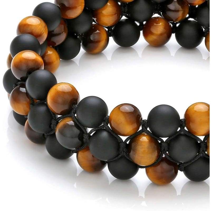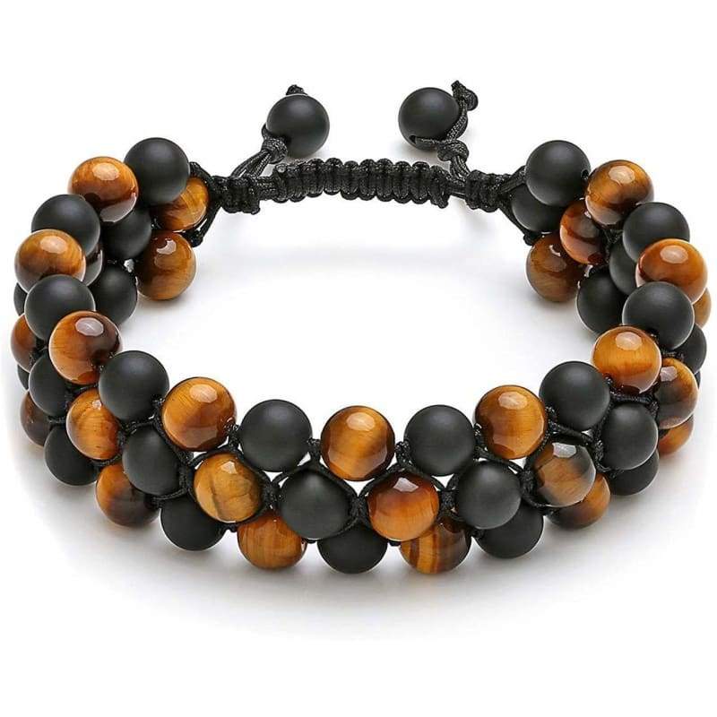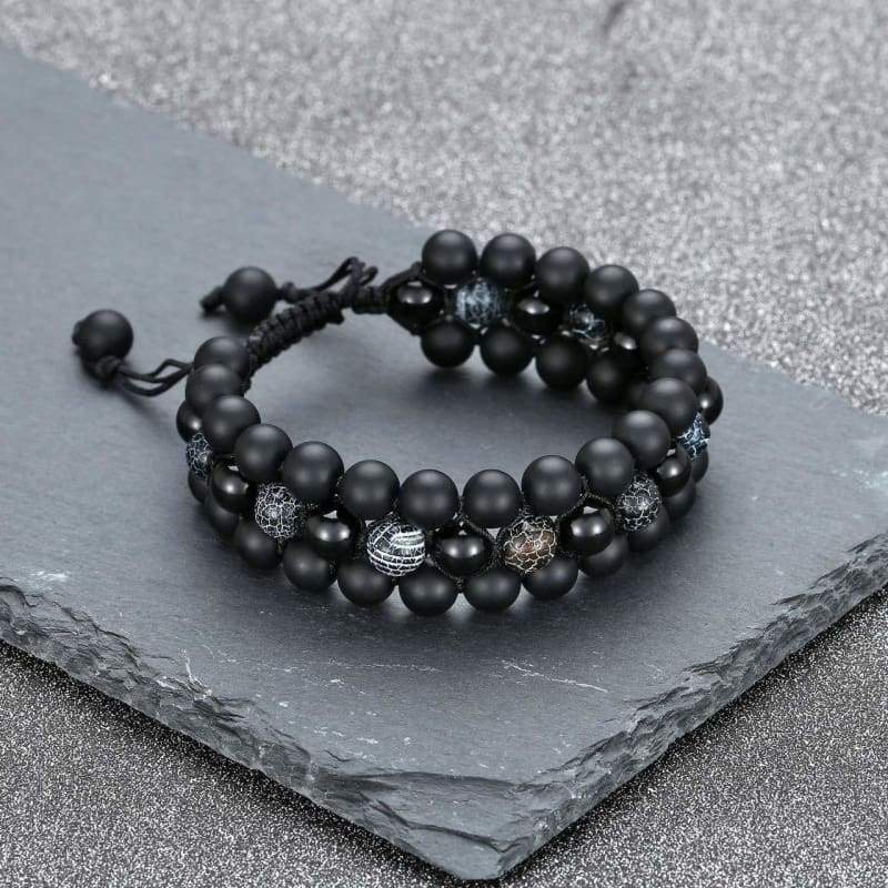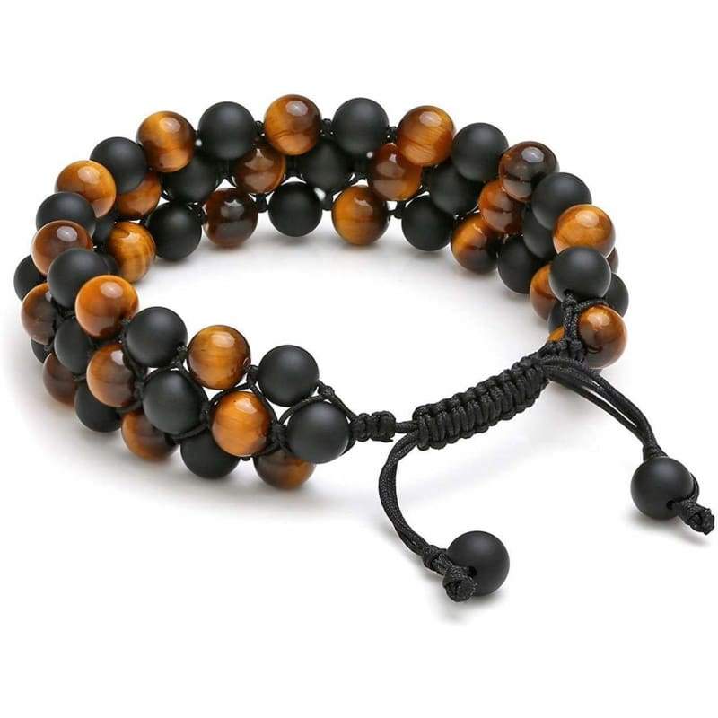 ● MENS BEAD BRACELET- Awesome Unique handmade 3-layer beads bracelet 8mm, capable to easy put on and loose adjustable stone bracelet for men and women, match well with your watch and leather bracelet