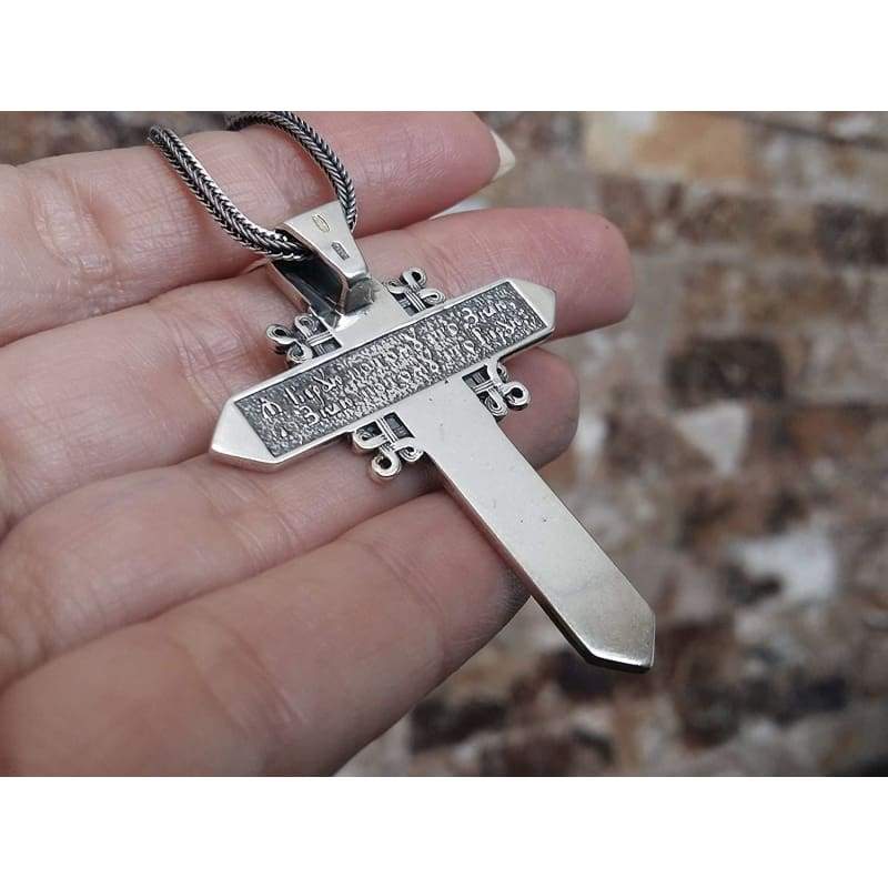 Large Ancient Pagan Cross Pendant Necklace Amulet Hands of God Replica Mens Celtic Cross"I believe because I know, I know because I believe" Heathen Jewelry for Men 925 Sterling Silver Handmade