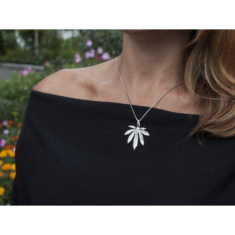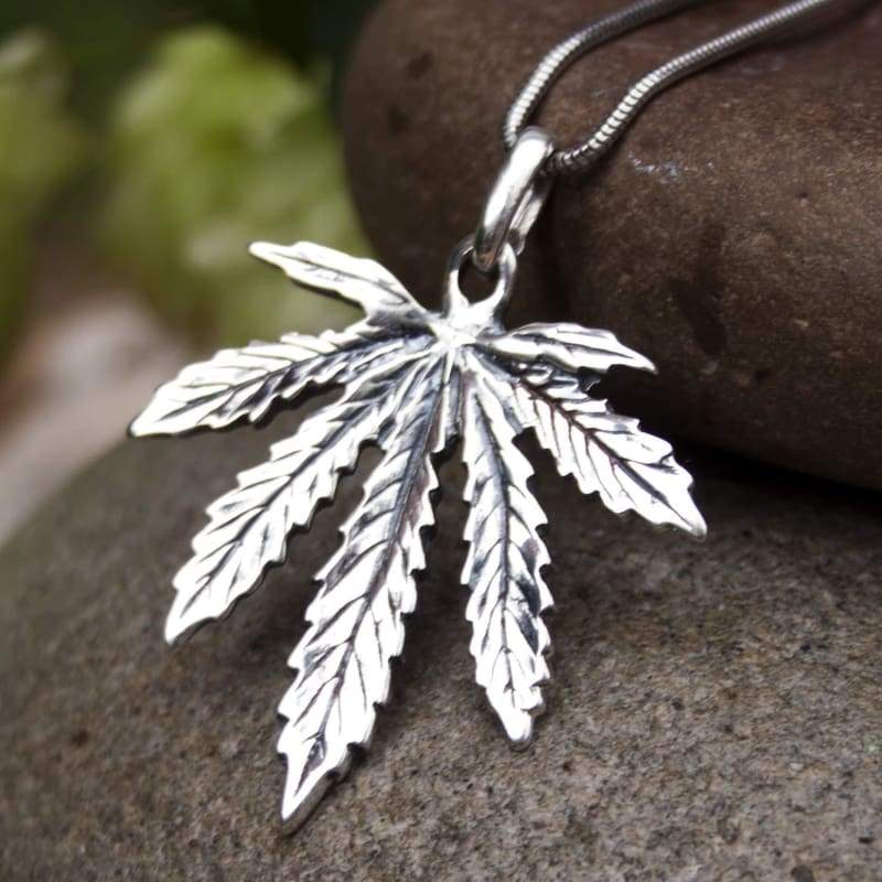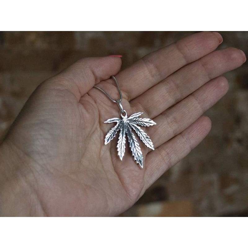 Large Marijuana Pot Leaf Necklace 925 Sterling Silver Cannabis Weed Pendant Hippie Party Choker Charm Rasta Hip Hop Yoga Jewelry Cool Gifts for Men Women Handcrafted