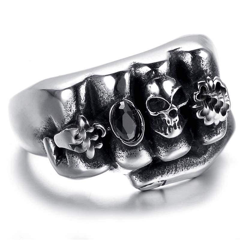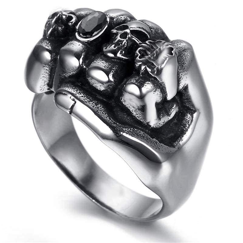 Mens Biker Knuckles Fist Ring in Silver Stainless Steel