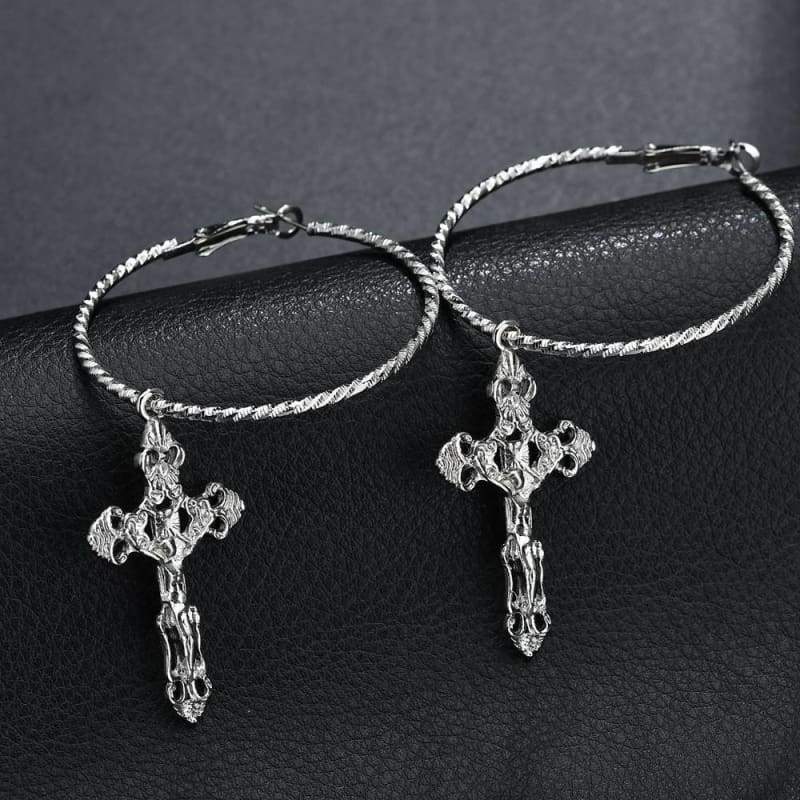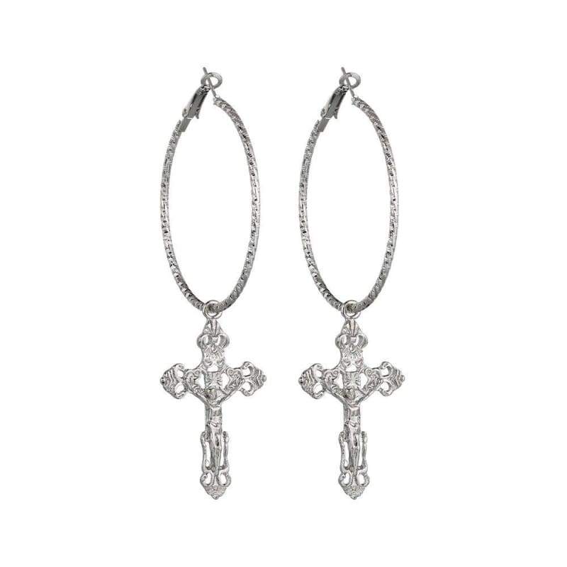 metal punk hyperbole fashion Jesus Cross pendant big circle sexy hoop Earring Women Jewelry - Ear Jewelry
