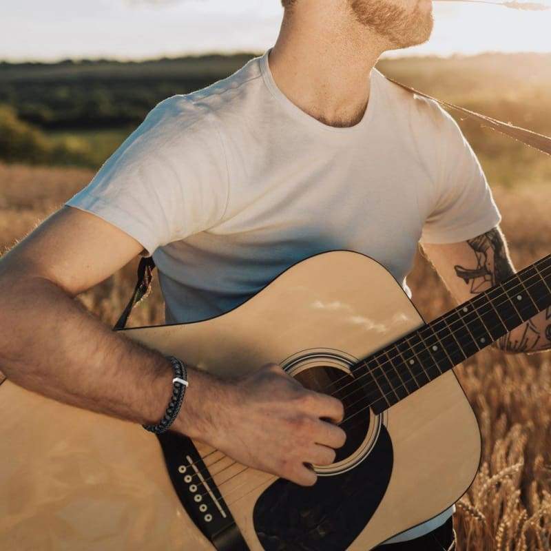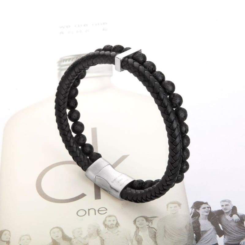 Men's Bead Leather Bracelet Blue and Brown Bead and Leather Bracelet for Men (Black)