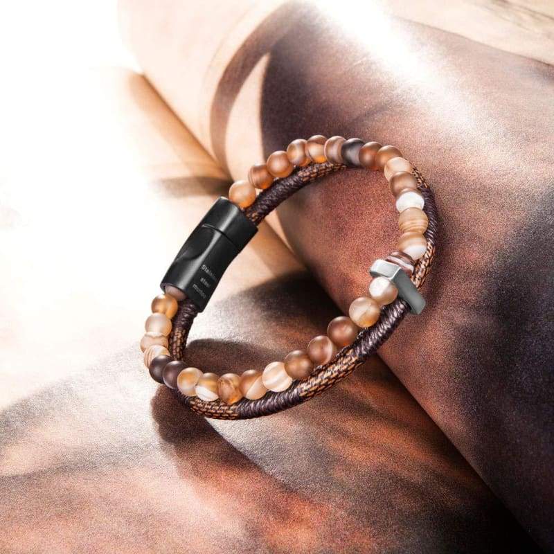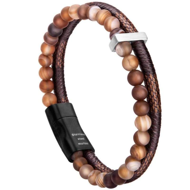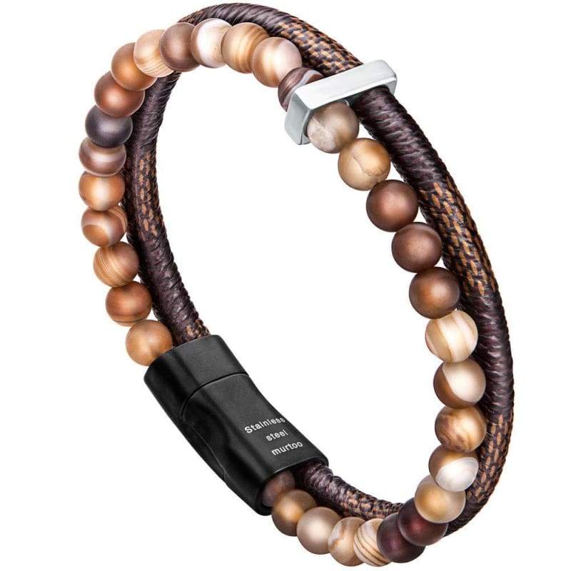 murtoo Mens Bead Leather Bracelet Blue and Brown Bead and Leather Bracelet for Men (Brown) - Apparel