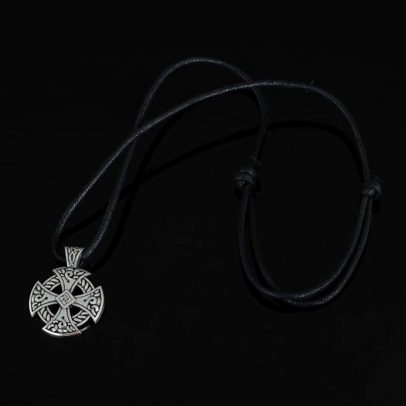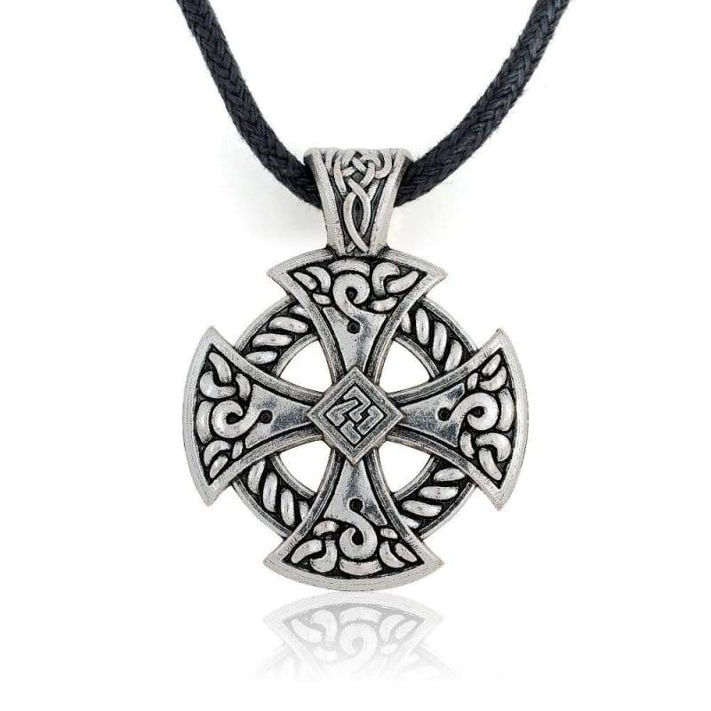 My Shape Cross Viking Shield Pendant Necklace Jewelry Tibetan Silver Solar Cross Knot Religious Christian Irish Druid Leather
