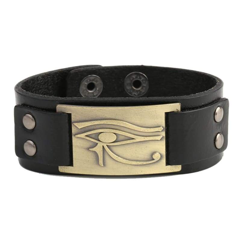 Eye of Horus Ra Thoth Udjat Leather Cuff Bracelet Egyptian Amulet Pagan Jewelry (Antique Brass Black)