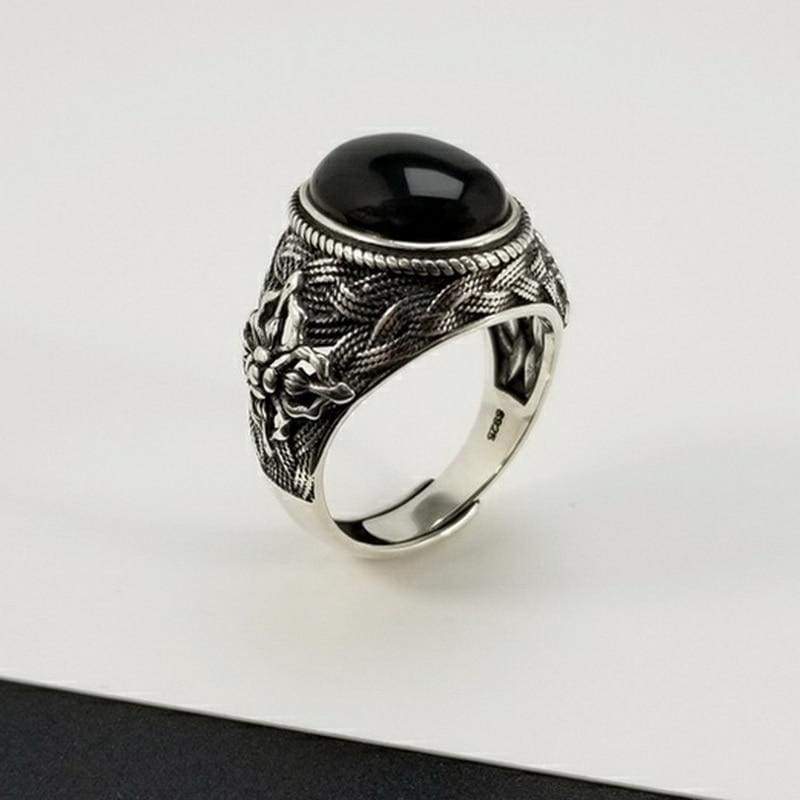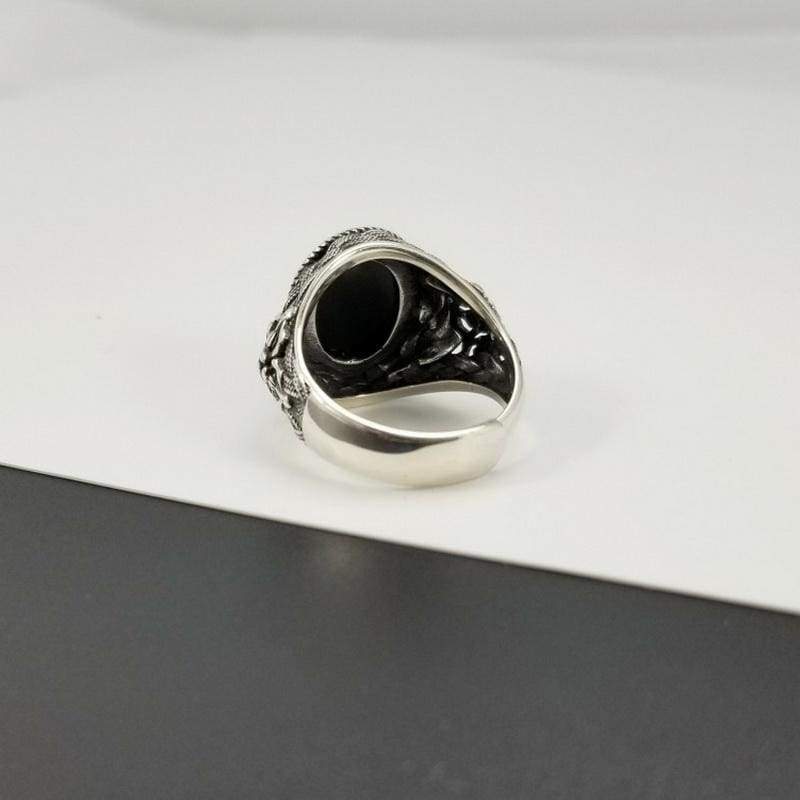 Natural Black Onyx Oval Stone Solid Silver 925 Band Rings Men 100% Pure Sterling Silver 925 Thai Silver Cool Mens Jewelry Gifts (Resizable
