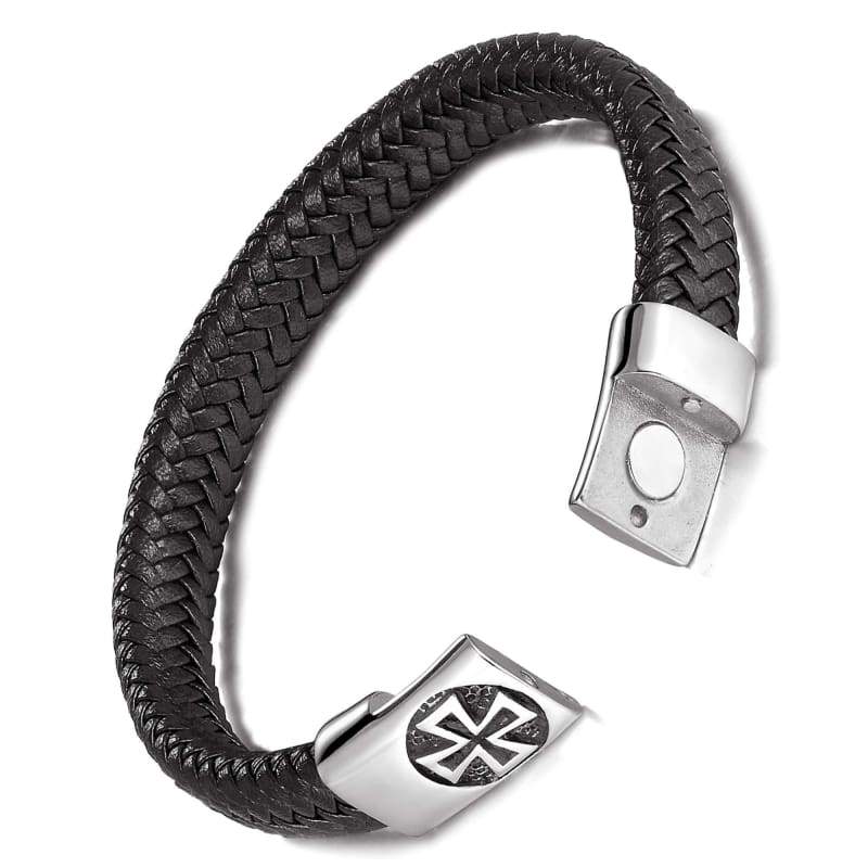 Details: Featuring a braided genuine-leather design, this men's bracelet will be your go-to accessory matches any style of your outfit. The braided leather design and a stainless steel clasp give this bracelet a timeless look. Length: 8.0 in. Width: 12mm Safety Clasp Nickel free